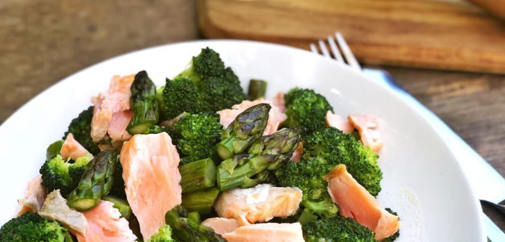 Quick Steam Asparagus, Broccoli and Salmon Salad